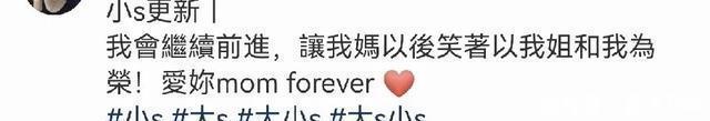 小s在同一天差不多的同时段更新了社交媒体动态,晒出徐妈妈黄春梅拿着金钟奖奖杯合影的图片,并且配文称:“我会继续前进,让我妈以后笑着以我姐和我为荣,爱你”,图片背景还是大s的遗照,看到这一幕还真是让人忍不住落泪。